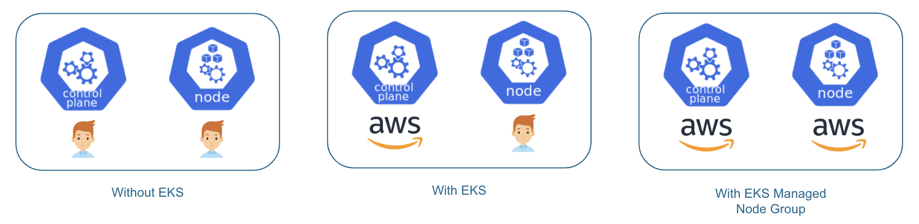 Amazon EKS is a fully managed service, meaning that AWS manages the control plane of Kubernetes for you, which includes the API server, etcd, and scheduler. This frees you up from the operational overhead of managing a Kubernetes control plane, allowing you to focus on deploying and scaling your containerized applications.