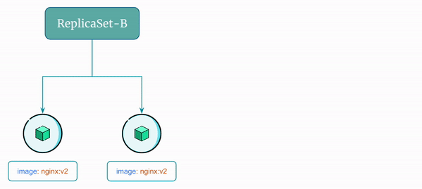ReplicaSet, let's sayReplicaSet-Bthat uses the updated imagenginx:v2 - Scale up