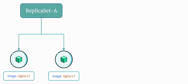Let's say you have a ReplicaSet named ReplicaSet-A running two identical pods and the name of pods are Pod-A and Pod-B. Let's say Pod-A and Pod-B are using image nginx:v1.