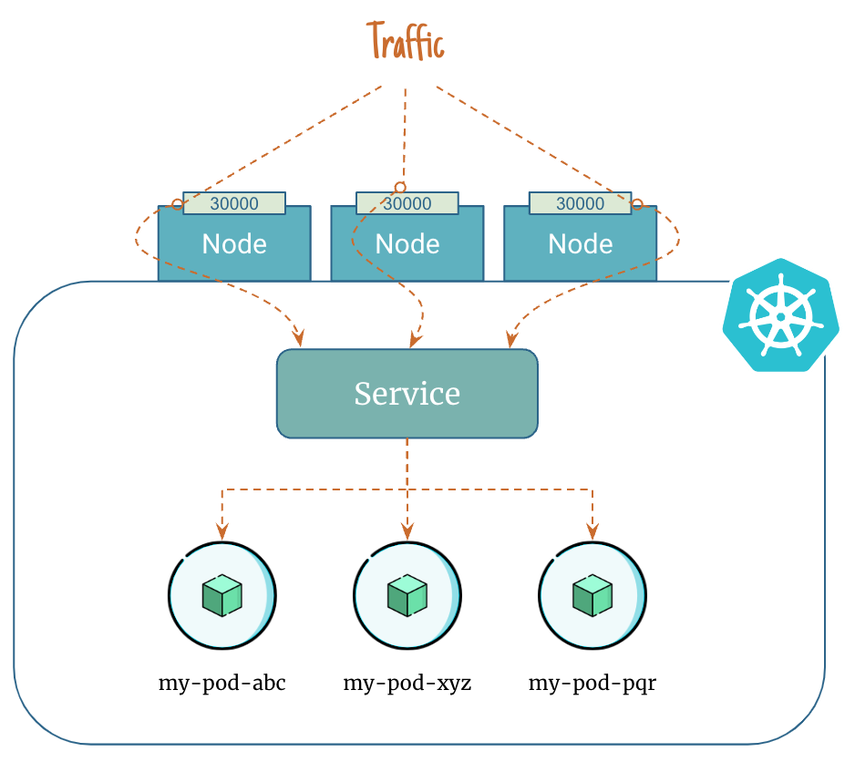 NodePortexposes the service on each Node's IP at a static port (theNodePort).NodePortservice can be accessed as<NodeIp>:<nodePort>