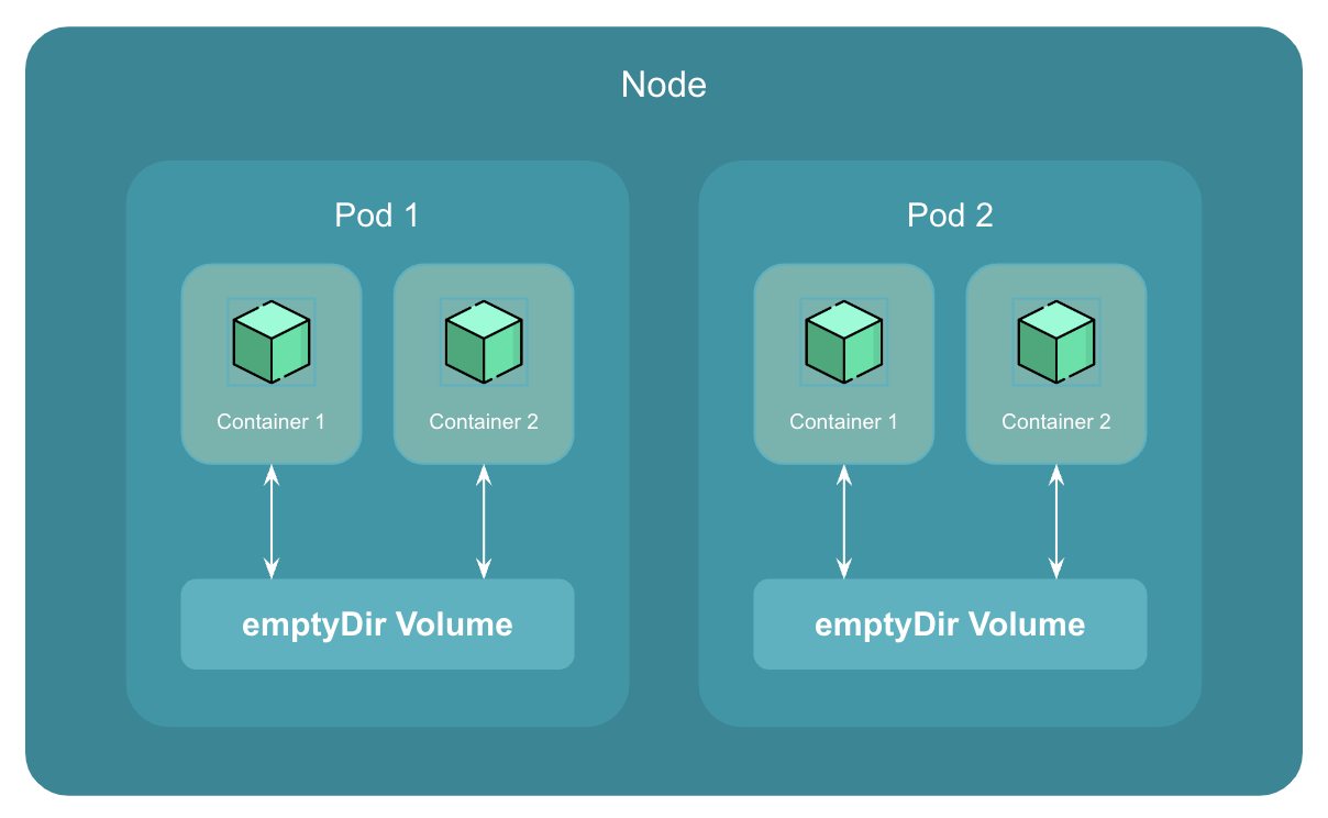 emptyDirvolumes can be used to share data between containers running in the same pod. For example, if you have a pod running two containers, one of which generates data and the other processes it, you can use anemptyDirvolume to share the data between the two containers. -