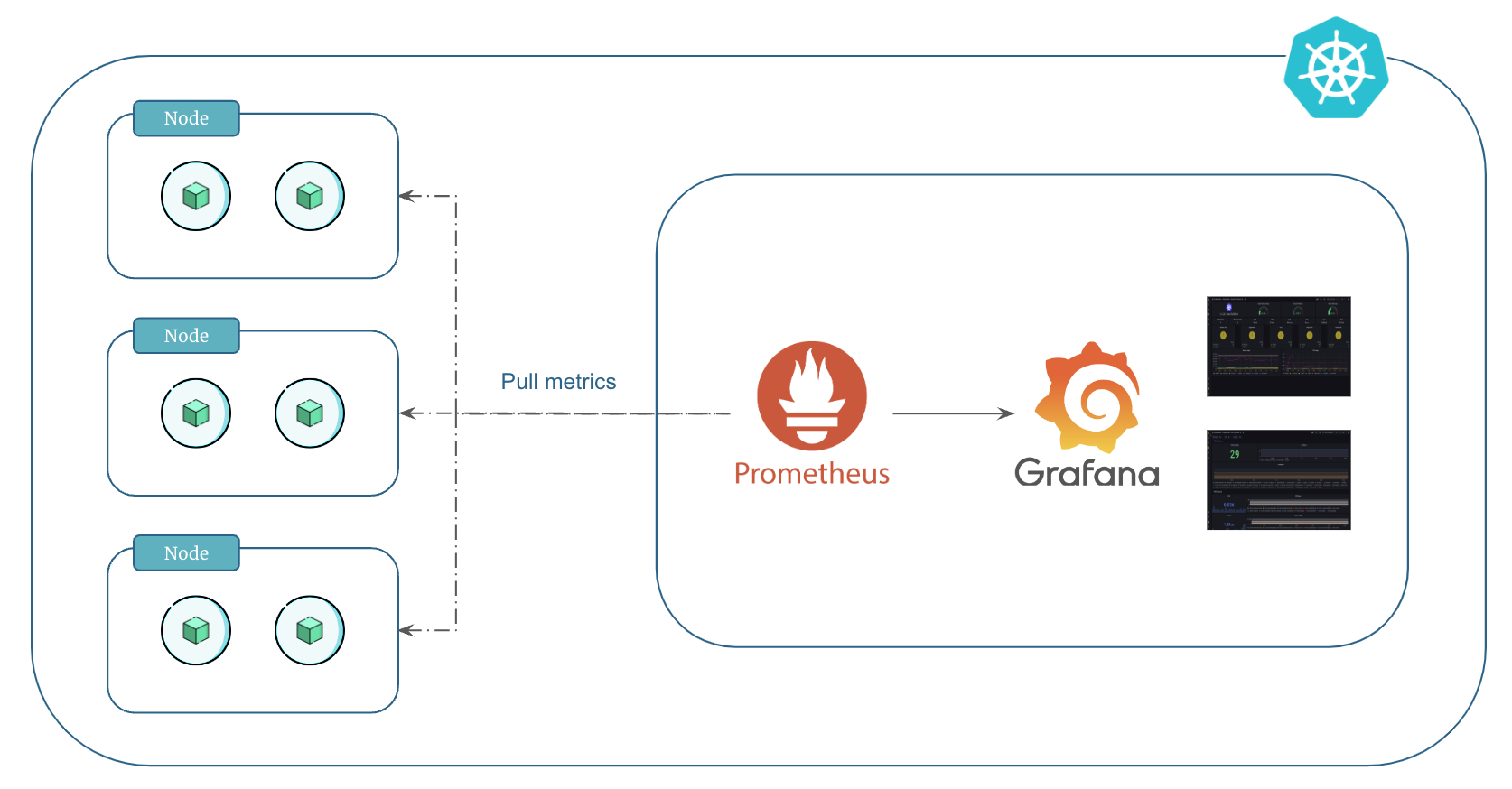You can also set up custom exporters in kubernetes to capture custom metrics from your applications or services. These tailored tools expand monitoring capabilities, providing detailed insights beyond the standard metrics, addressing your specific monitoring needs.