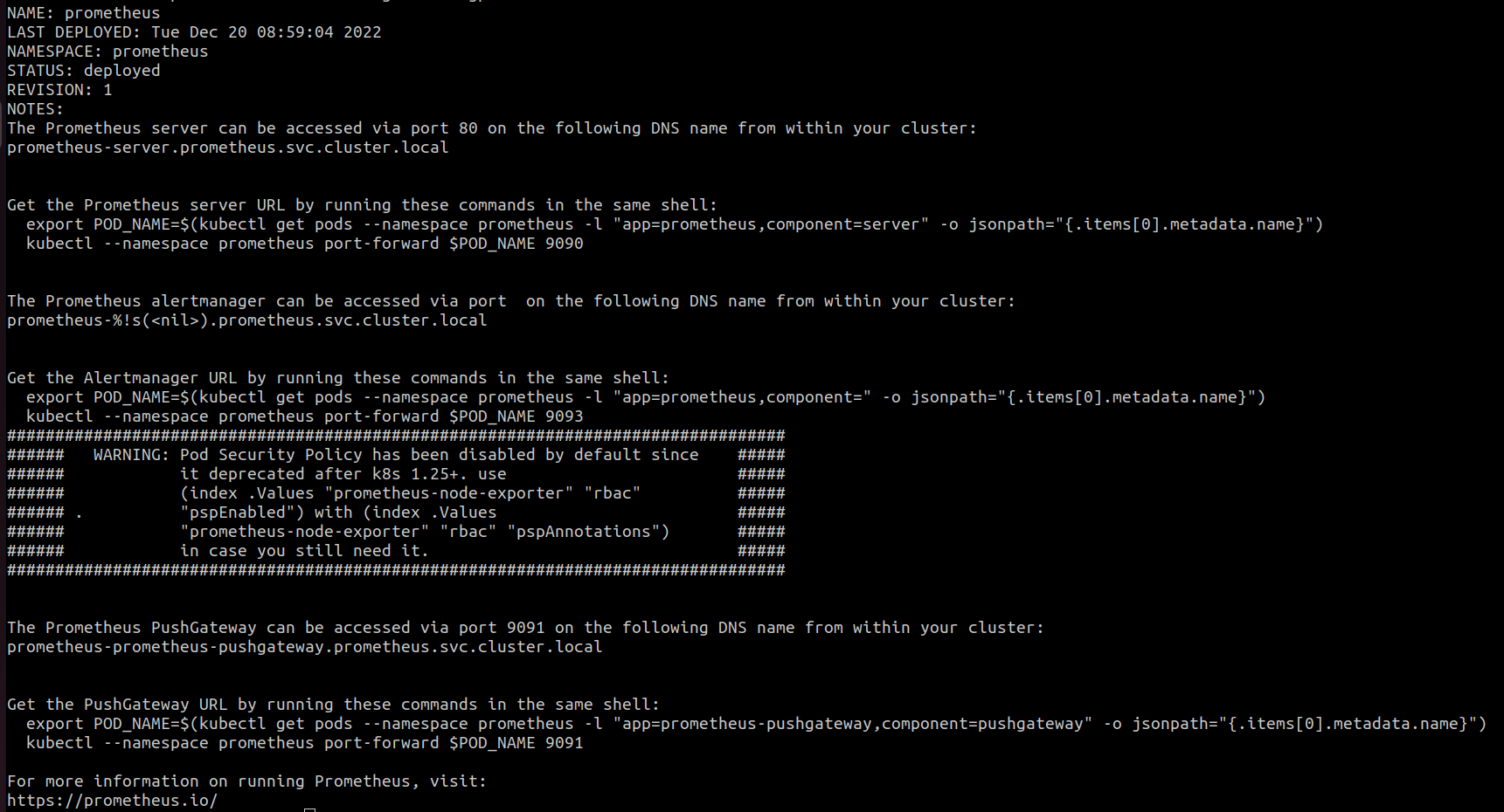 Make note of the prometheus endpoint in helm response (you will need this later). It should look similar to below: